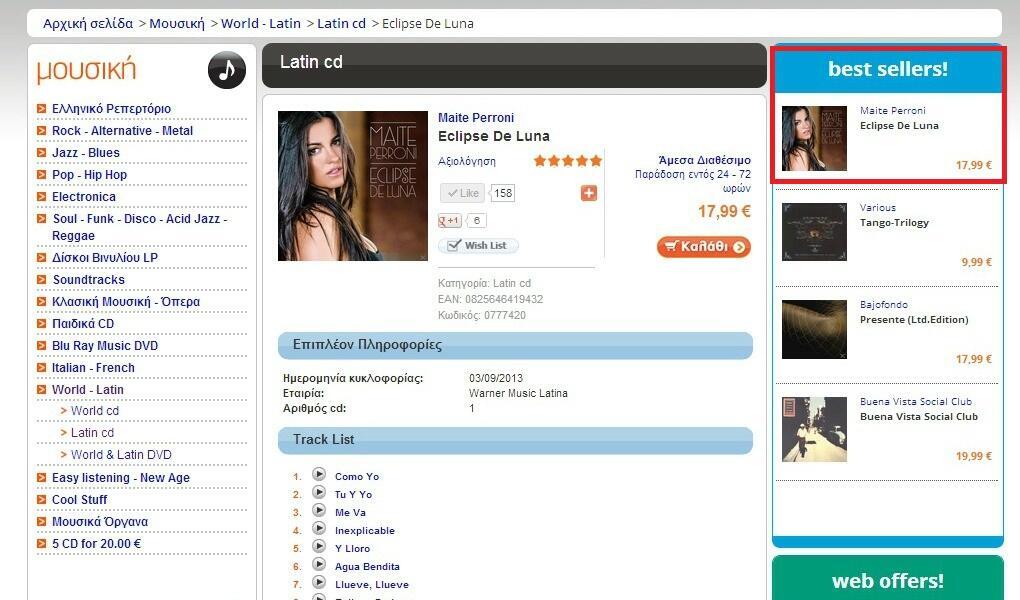 O CD "Eclipse de Luna" de Maite Perroni está ultrapassando barreiras pelo mundo todo. Depois do disco de ouro conquistado no México na Grécia o primeiro álbum solo se torna um dos mais vendidos em sites além da Maite a única mexicana que conquistou o primeiro lugar no "Best Sellers" foi a Thalía com o Primera Fila. No Brasil o CD anda bem nas vendas digitais e foi lançado á menos de 3 semanas nas lojas físicas.